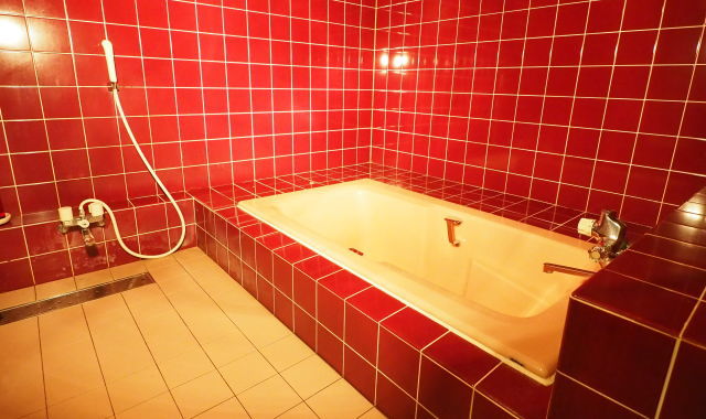 ●バスルームは2F、3F、4F、5F共に同じスタイルの色違いで、タイルの色はレッド、ピンク、ホワイト、ブルー、グリーンです。